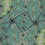 Spectacular views of various creatures such as birds and frogs, and different vegetation can be viewed in the Yalke or wetlands of Australia, both in dry or wet seasons. In the dry season, vast water mass goes back to permanent wetlands, waterholes etc. and become home for waterfowls and many other migratory birds of Australia. In the wet, birds like magpies and geese congregate on the wetland or Yalke. June, with a vibtant color sense, has brilliantly depicted this design with Aboriginal symbols and signs out of her dreamtime story